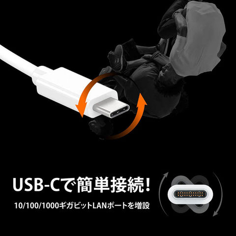 ドライバー不要、ルーターから接続されているUSB C 有線LAN ケーブルを繋げるだけ