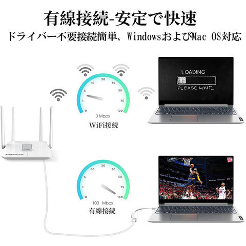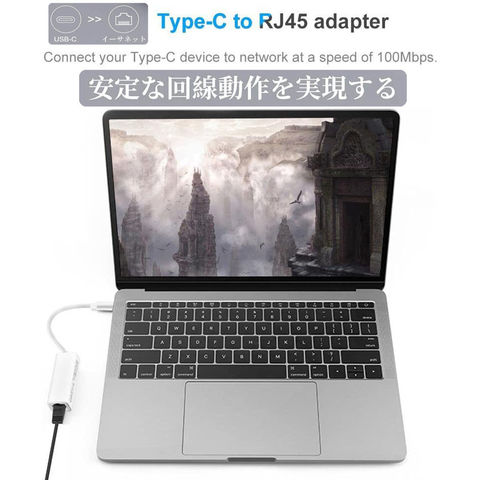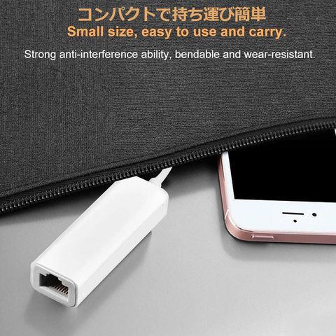 USB-C rj45 変換アダプタのおかげで、タブレットやパソコンにインターネットへ接続することができます。Wi-Fiが届かない場所でも、10Mbps / 100Mbpsの転送レートにより、オフィスや自宅にいたようにインターネットを利用できます。(ご注意:ルーターから接続されているネットワークケーブルのみサポートされています。)