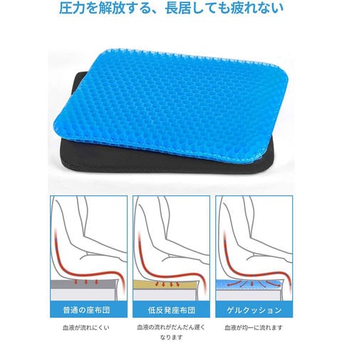 【柔軟性と耐久性】このクッションマット採用したゲル状素材は耐久性に優れているので、長期間使用しても変形しづらくなっています。非常に丈夫で耐久性に優れています。クッションはストレスを軽減しながら最大のサポートと快適さを提供でき、長時間座っても疲れにくいです。このクッションに採用されたゲル状の材料は耐久性が高く、長く使っても変形しにくく、丈夫です。座布団コートがついています。コートに滑り止めの粒があります。