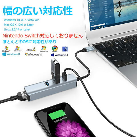 対応OS&堅牢性:Windows10、Windows8.1、Windows8、Windows7、Windows Vista、Windows XP、Mac OS X (10.5/10.6/10.7/10.8/10.9/10.10)、 Linux: カーネル3.0以上。強化設計されたケーブルと耐熱端子により、保護性能が高く、長い時間がお使いいただけます。Nintendo Switch非対応です。