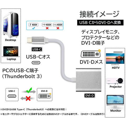 DVIからUSB Type-C(Thunderbolt3)ヘの変換には非対応。