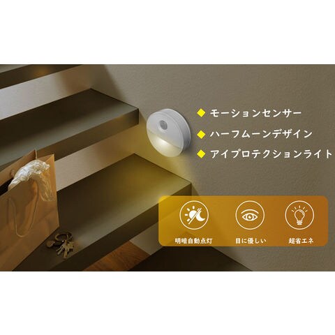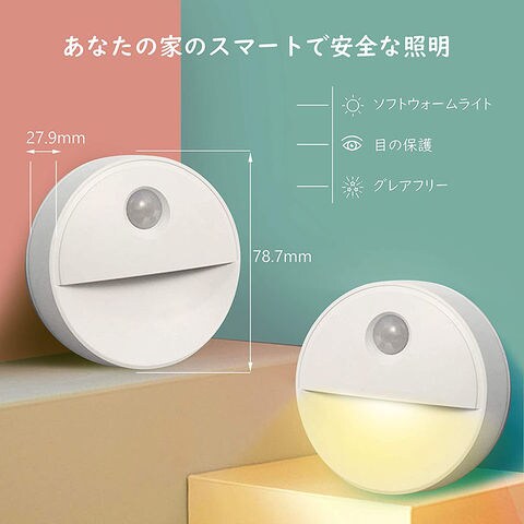 【暗くなると自動点灯】LED夜間ライトは明暗光感センサーを採用し、暗くなったら自動で点灯し、明るくなると自動的に消灯します。人感センサーが搭載されており、感知範囲に動きを感知すると自動的に点灯します。検出角度は120°で、検出範囲が最大3mです。動きが感知されないと約15-30秒後、自動消灯されます。し忘れの心配がなく、スイッチ操作も必要ありません。便利で省エネ、深夜の安全や防犯に役立ちます。【目に優しい光】LEDコンポーネントが見えないから目に優しい!夜間や暗い場所で点灯すると、やわらかな電球色と昼光を放ちます。暖色と寒色のLEDライトは、視覚的な疲労を改善し、目を柔らかくすることができます。電球色は白色光と比較して、夜は柔らかく快適な照明効果が得られます。十分な光は、壁のライト、廊下のライト、階段のライト、本棚、クローゼットの壁のライトとして使用できます。