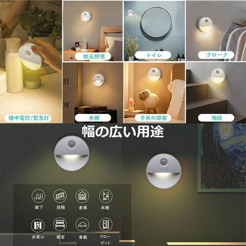 ◆ コンパクトの夜間ライトなので、空間を占用しません。 玄関用、授乳用、ドアの裏、階段、キッチン、足元灯、本棚、ペット用など、どんな場所にも取り付けられます。灯りが不足していたところや、子供部屋、浴室、トイレなど、夜間の照明としてもピッタリです