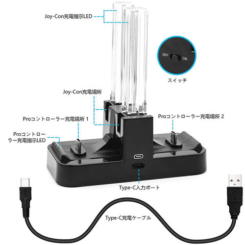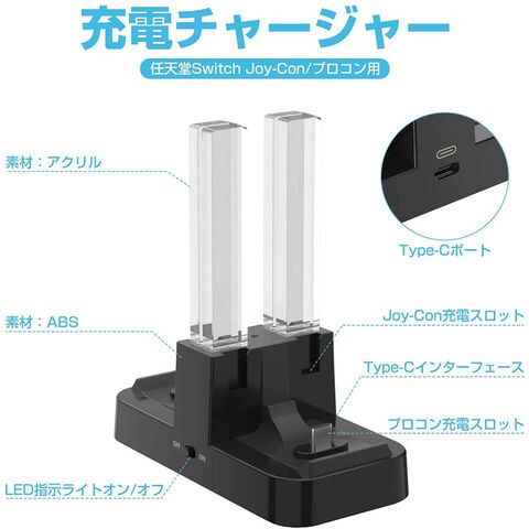 Joy-Con Proコン コントローラー 充電 スタンド Nintendo Switch用 3WAY充電可能 ジョイコン ニンテンドー スイッチ プローコントローラー 充電ホルダー チャージャー 充電指示LED付き 送料無料
