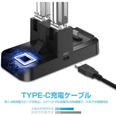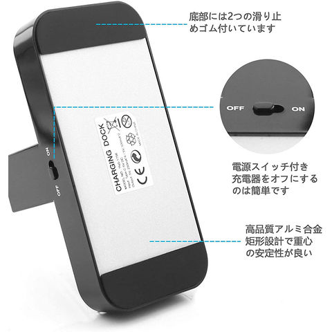 【デザイン】コンパクトで軽量な縦置きの外観が、Nintendo Switch Joy-ConまたはProコントローラーの充電のみでなく、スタンドとしても便利に使える。充電器の底面は滑り止めパッドにより、ハンドルを安定に充電することができます。矩形設計で、スタンドは安定性に優れており。