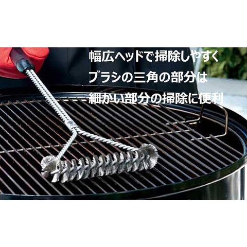三角形で、グリルの表面から狭い隅までブラシが届きクリーニングに最適です