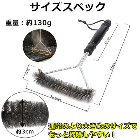 焦げが取れやすい:バーベキューをやった後のグリルの網の焦げ落としはとても結構面倒くさいところですが、ステンレス鋼材で制作されたこのブラシは、しっかりと鉄板・グリルの火格子等のコゲ付きやしつこい汚れを一気に豪快に落とせます。長年使ってもブラシの毛が落ちにくいです。360度回転ブラシ毛:360度回転ブラシ毛はグリルの表面だけではなく、トップ・側面・底面、隅々まで綺麗に掃除できます。 ステレンス製の毛は変形にくいです、長く使用できます。