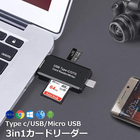 【2個セット】Type-C Micro usb USB 3in1 メモリカードリーダー SDメモリーカードリーダー USBマルチカードリーダー OTG SD Micro SDカード両対応 多機能 データ転送 Type-C Micro usb Windows Macbook Android 送料無料