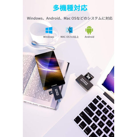 ・OTG付きのメモリカードリーダーで、パソコンやOTG機能付きのAndroidスマートフォン/タブレットをサポートしています。