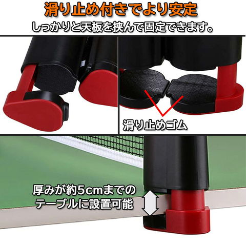 【テーブルさえあれば簡単設置】卓球台は要らない、テーブルだけあれば、簡単にセットして卓球を楽しめるポータブルネットです。グリップ機構の支柱で天板を挟んで固定します。ネットの伸縮サイズは最長約180cm、厚さ約5cmまでのテーブルに設置可能。わざわざ卓球館に行かなくても、家にいても卓球を楽しむことができます。【コンパクト・持ち運びに便利】この卓球セットを使いたい時に使いたいだけネットを引っ張り出す方式で、収納時はとってもコンパクト。自宅、アウトドア、レジャー、職場など、どこでも遊べてすごく盛り上がって楽しめます。卓球は上達するや、運動不足も多少は解消される、ストレス発散にもなる、しかもプラスチック製で軽量なので、旅行やイベントに持っていくのにもおすすめです!