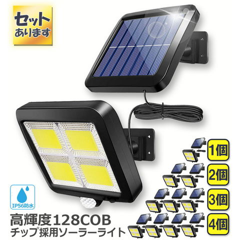 【2個セット】ソーラーライト 128COB センサーライト 屋外 COBチップ採用 3モード 120° 照明範囲 ソーラーライトモーションディテクター 5Mケーブル付き 防水 防犯ライト 自動点灯 屋外照明 庭 玄関 ガーデンライト 駐車場 停電緊急対策 防災ライト 送料無料