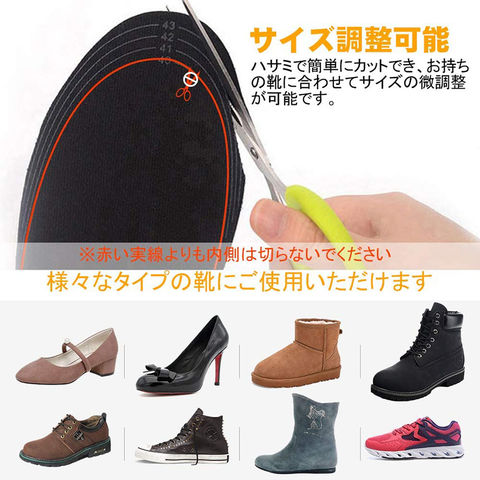 【サイズ調整可能】Mサイズ(約230~250mm)  Lサイズ(約250~275mm) 様々な靴に適用します。一般的な中敷き同様に靴のサイズに合わせて先端部分をハサミなどで切り取ってご使用ください。