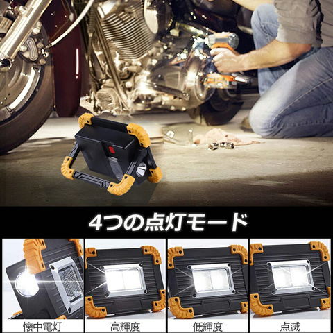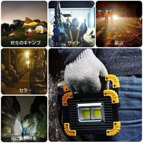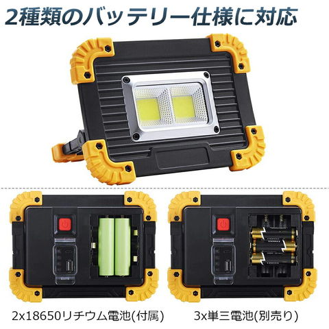 【超高輝度】最大範囲:200~500M ハイパーワLEDチップを採用しており、120度の広角反射板に、鱗型が採用されるため、より広く均一な照明を提供します。 COB 20W、500mの明るさで暗いところを幅広く照らす整備作業灯として機能的に十分で、夜間作業は楽ちん!キャンプ、アウトドア、災害時の非常ライト、製造ライン、自動車整備、工事現場、倉庫作業、トラック荷台作業、車載用などに大活躍.【USB給電&充電】USBコネクターを接続して簡単に給電します。2本 3.7V 18650リチウム、付属のUSBケーブルで充電可能!充電しながら使用することができます。また、3本AA電池を使用することができます。