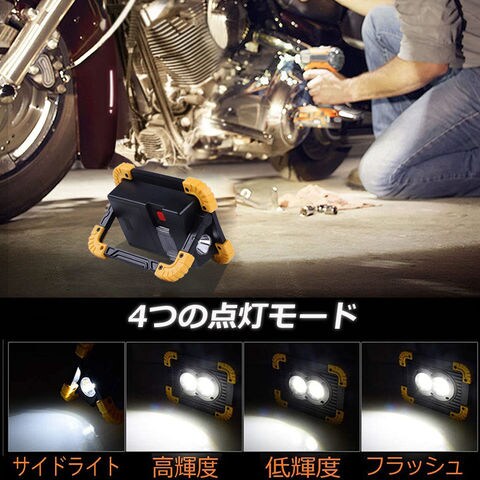 【4個セット】作業灯 投光器 ワークライト LED 充電式 20W ポータブル 緊急照明 屋外照明usb 充電式 LED投光器 自動車整備 アウトドア キャンプ 旅行 夜釣り ランニング 防災 地震 バッテリー付き 180°角度調整可能