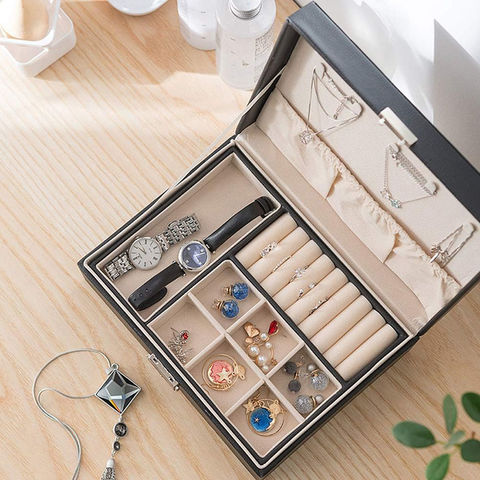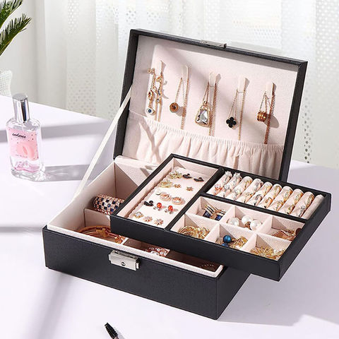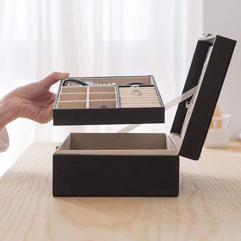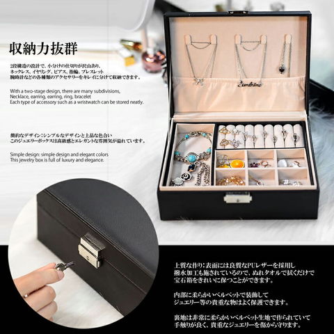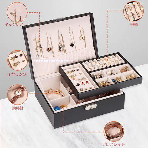 【2個セット】ジュエリーボックス 大容量 アクセサリー収納ケース 2段 ブラック アクセサリーケース アクセサリー入れ リング ネックレス 小物入れ ピアス 指輪 おしゃれ