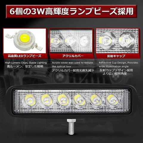 18W LED作業灯 ワークライト 6連 デッキライト LED投光器 18w 12v 24v 兼用 防水 防塵 防震 取付け自由 省エネルギー コンボビーム 集光 投光両立 各種作業車に対応 前照灯
