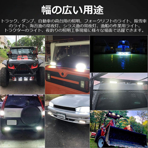 【用途】:トラック、ダンプ、自動車の荷台用の照明、フォークリフトのライト、除雪車のライト、海苔漁の常夜灯、シラス漁の常夜灯、漁船の作業用ライト、トラクターのライト、夜釣りの照明・集魚ライト、漁業用、農業機械用、建設機械等作業に、災害時の備えに、交通整理に、工事現場に様々な場面で活躍できます。