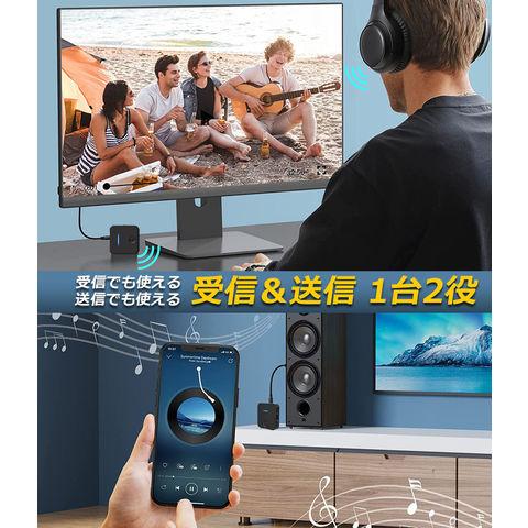 【多機種対応&Bluetooth V5.0】一般的な3.5mmイヤホンジャックを採用しているので、3.5mmプラグ/ジャックのイヤホンやオーディオ機器(TV、パソコン、カーオーディオなど)に対応します。また、Bluetoothバージョン5.0では通信速度、範囲、容量がそれぞれ大幅に向上したことで、遅延を最小限に抑え、映像と音声の時間差を感じること無く快適に楽しめます。Bluetoothに対応していないテレビに最適です。