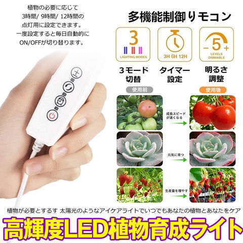 【タイミング機能】異なる植物のニーズに応じて、3時間、6時間または12時間の三つの時間設定モードがあります。時間を設定すれば、3時間・6時間・12時間後自動的に電源が切れます。サイクルタイマーによって、設定した時間通り、毎日自動的にON/OFF。毎日設置する必要はありません。お出かけるときにも使えます。