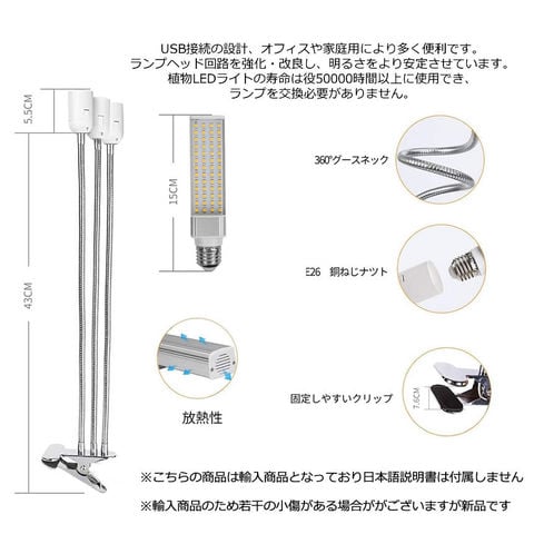 【2個セット】植物育成ライト LED植物育成灯 ledライト 育苗ライト 132個LED E27電球仕様 多肉植物育成 室内栽培ライト 家庭菜園 室内園芸 水耕栽培ランプUSB クリップ式 低消耗電力省エネ 3灯 360°調節可能 室内栽培ランプ タイミング定時機能