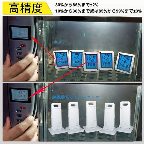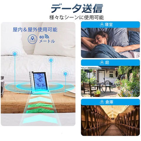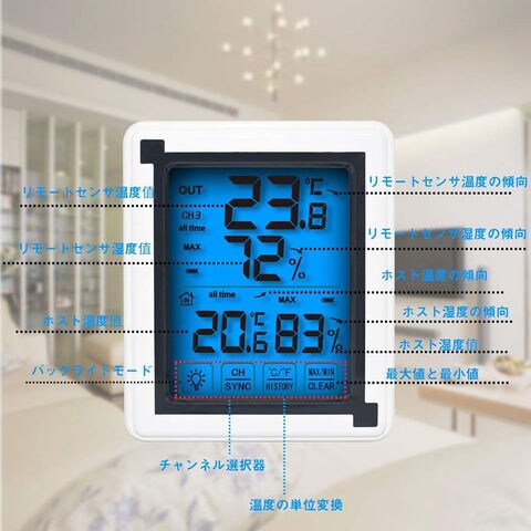 温度計 温湿度計 デジタル 温湿度計 外気温度計 ワイヤレス 外気温度計 ワイヤレス 防水 温度湿度計 冷蔵庫 業務用 室内 室外 高精度 LCD大画面 バックライト機能付き 温度傾向図表示 置き掛け両用タイプ 冷蔵庫温度計 室内屋外兼用