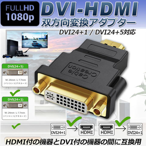 HDMI DVI 双方向伝送 アダプター HDMI to DVI DVI to HDMI どちらも接続可能 1080P高解像度 フルHD 金メッキ端子 DVI-D 24+5 24+1 対応 レコーダー パソコン TV モニター プロジェクター等に適用 送料無料