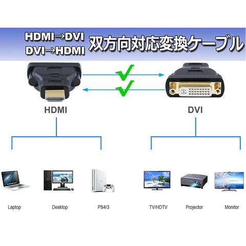 『対応機種』 PC、新型PS4Pro、PS4スリム、PS3、WiiU、Xbox One、Xbox360、Chromecast、ディアプレーヤー、HDDレコーダー等様々なHDMI接続機器をディスプレイ、プロジェクター、HDTV等に対応します。『双方向伝送』 HDMI to DVI、DVI to HDMI信号を双方向伝送可能する為、お手元のDVI 端子が搭載する機器(例えラップトップ/デスクトップ)からHDMI 端子が搭載するAV受信機、HDTV 、ディスプレイ等への信号伝送も実現できます。またDVI-I(24 +1)とDVI-D(24+5)コネクター搭載の設備に適用です。(単独のHDMIケーブルは別売りです)