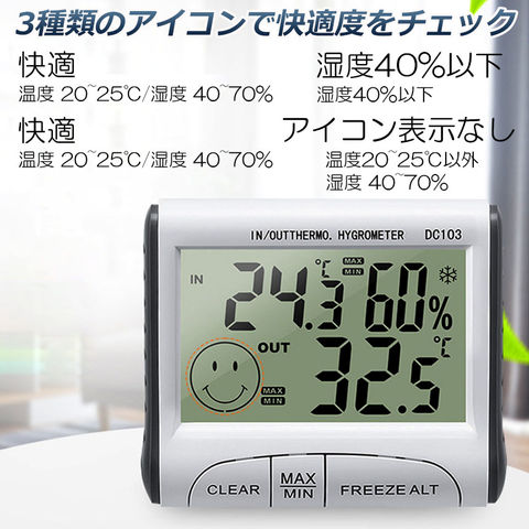 温湿度計 温度 湿度 デジタル温度計 快適レベル表示 デジタル 華氏 摂氏 マグネット 置き式 デジタル湿度計 室内温度計 大画面 最高最低温湿度表示 熱中症 インフルエンザ対策 水温計 水槽 冷蔵庫 コンパクト