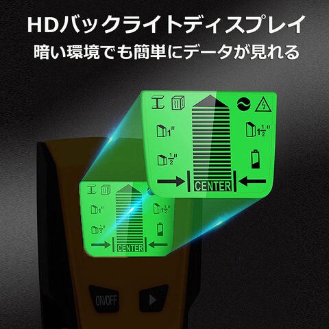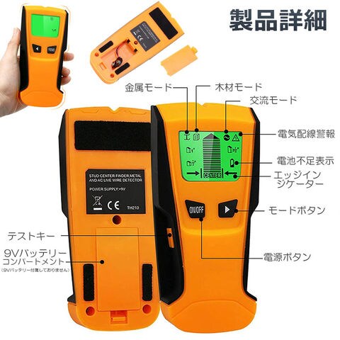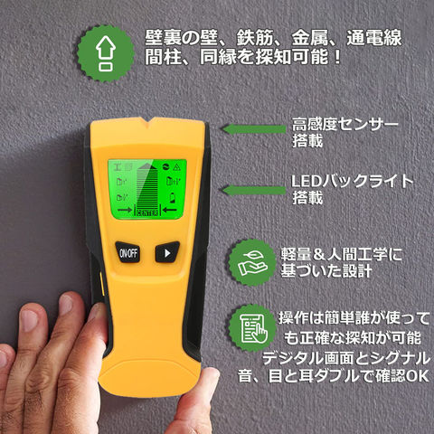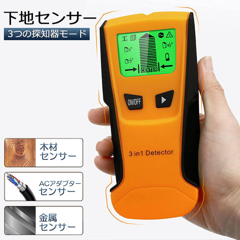壁裏センサー 下地探し 下地センサー 下地チェッカー 壁裏探知器 壁検出器 デジタル 一台三役 金属 木材 配線 位置 内装材 DIY 新築 LCD 電池残量表示 火災報知器 壁面 設置 バックライト付き