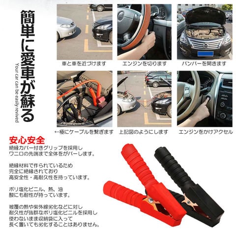 【リスクを軽減する】緊急ブースターケーブルは色によって区別することができ、赤はプラス、黒はマイナスです。偶発的なショートのリスクを効果的に最小限に抑えます。これは自動車の緊急充電に最適です。