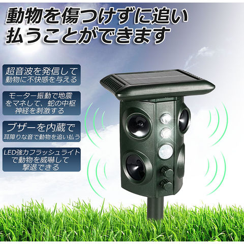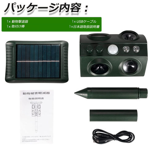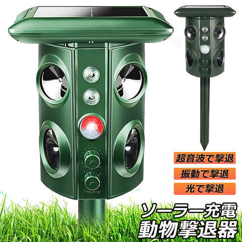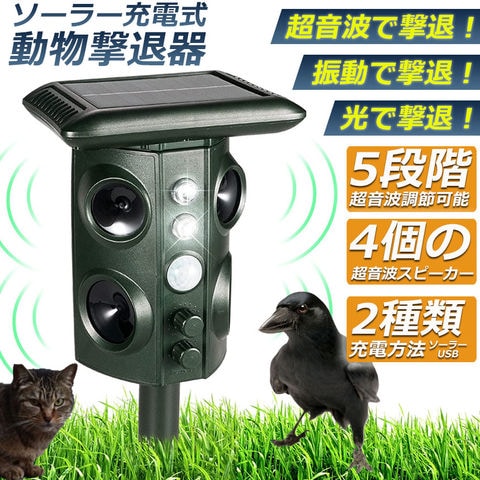猫除け 超音波 ソーラー 防水 ねこよけ 鳥よけ 犬よけ 猫避け 動物撃退器 USB充電 & ソーラー充電 LEDフラッシュライト 振動 5つ撃退モード 音量調整可能 糞被害対策 鳥害対策 猫撃退 猫退治 鳥除け ネズミ除け 猫よけグッズ 害獣撃退器 日本語説明書付き