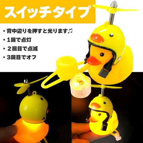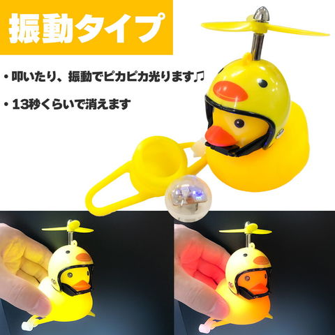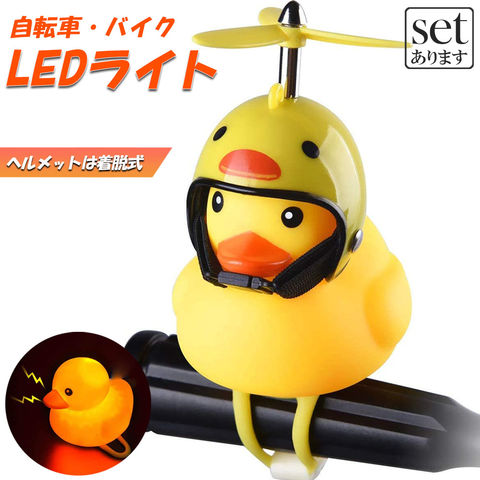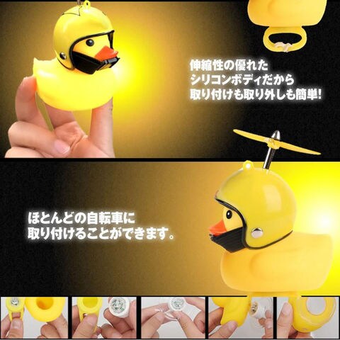 自転車ライト 黄色アヒル 可愛い 自転車ベル プロペラ搭載 音が出る ライト点滅 夜間走行に バイク 車にも ヘルメットにプロペラ付き 車内インテリア 取付簡単 夜間