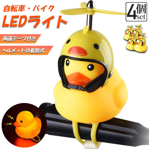 【4個セット】自転車ライト 黄色アヒル 4個セット 可愛い 自転車ベル プロペラ搭載 音が出る ライト点滅 夜間走行に バイク 車にも ヘルメットにプロペラ付き 車内インテリア 取付簡単 夜間