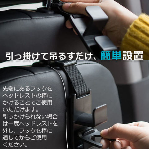 【使用シンプル】フックが片側開口部のデザインがございますので、ヘッドレストの取り外しが不要で、簡単に据え付けます。邪魔にならない。