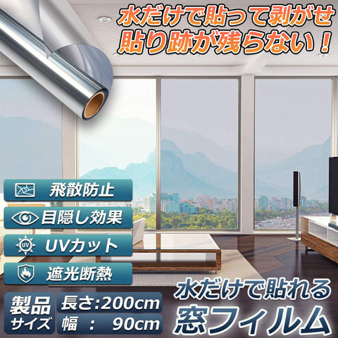 【4個セット】窓用フィルム 目隠しシート 窓 断熱 遮光 uv ガラス飛散防止 窓断熱シート 窓断熱フィルム 窓遮熱シート 遮光シート 水だけで貼れる マジックミラーフィルム UVカット 紫外線カット 日差し対策 窓ガラスフィルム 防犯フィルム 90x200cm