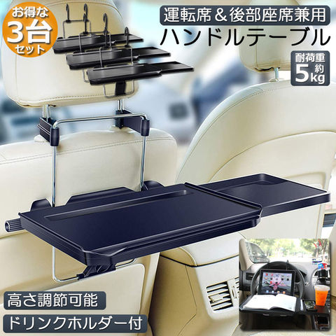 【3個セット】車 テーブル ハンドル テーブル 後部座席 テーブル 3台セット 車用テーブル 車載用テーブル 簡易テーブル 伸縮テーブル 車内食事用テーブル 車用トレイ 角度調整可能 高さ調節可能 安定感 簡単取り付け 後部座席 運転席 折りたたみ コンパクト 収納