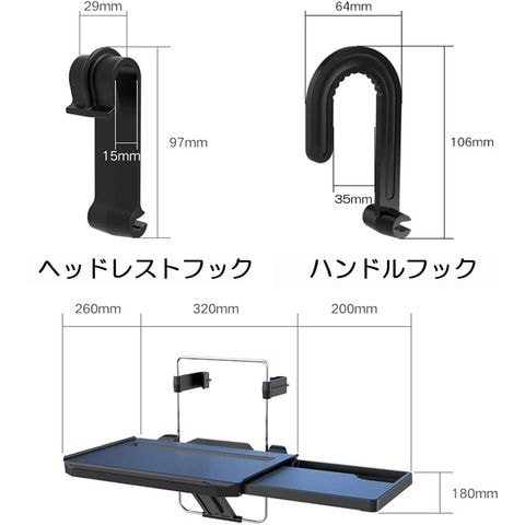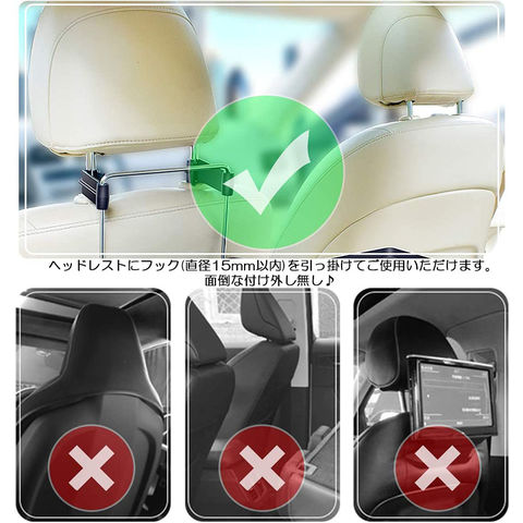 【取り付け簡単・収納簡単】ヘッドレストに使用する場合は、ヘッドレスト用フックの取り付けが必要です。 車のハンドルに使用する場合は、ハンドルフックの取り付けが必要です。取り付け簡単、工具不要!フックをハンドル、後部座席に引っ掛けるだけ。