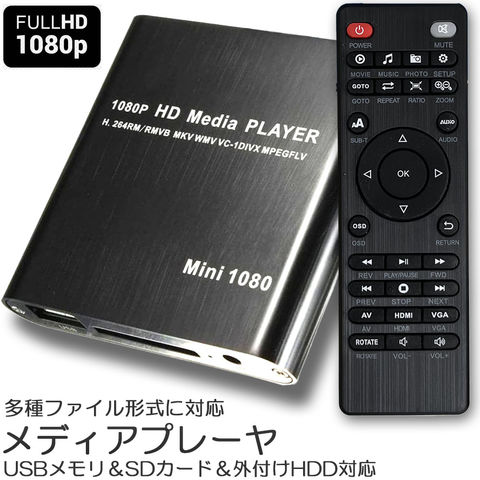 メディアプレーヤー デジタル 極小型 映像 再生機器 デジタル マルチメディアプレーヤー 大画面テレビや液晶モニターなどで簡単動画再生 SDカード USB HDD HDMI 出力 対応 1080p フルHD 日本語取扱説明書付属