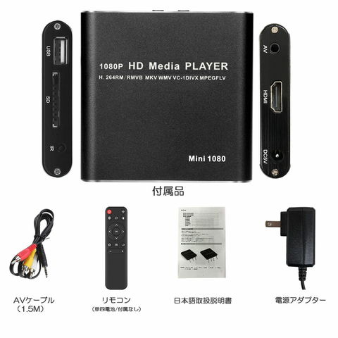 セット内容:本体、リモコン、AVケープル、ACアダプター、日本語取扱説明書