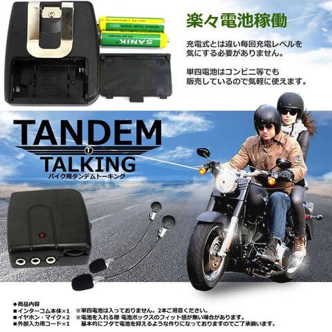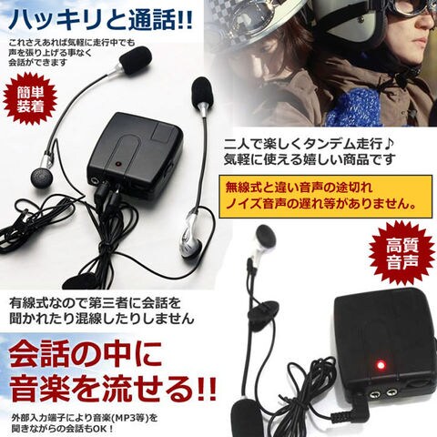 【2個セット】バイク用 インカム 有線インカム ヘルメット イヤホン バイク 電池式 3.5mm ジャック イヤホン マイク 2人乗り 通話 音楽 タンデム トーキング バイク用品