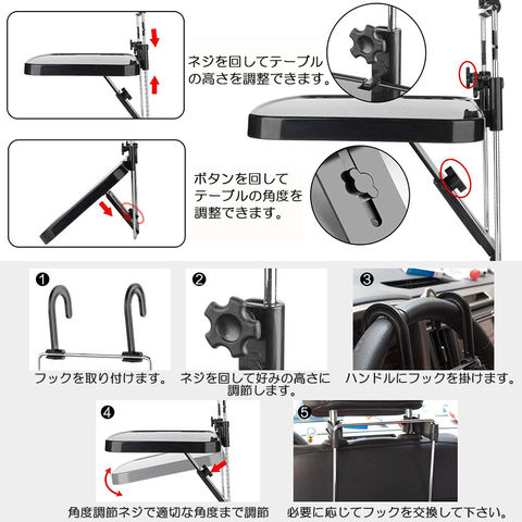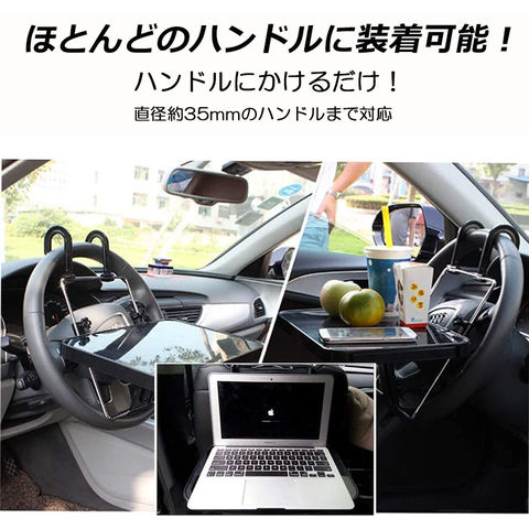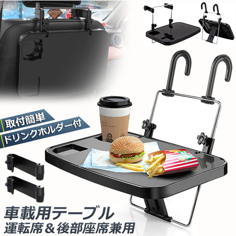 【運転席&後部座席兼用】車のハンドルや後部座席に吊り下げて使える簡易テーブル。車移動が多いビジネスマンの必須アイテム。食事、PC、事務作業、休憩に使いやすいです。