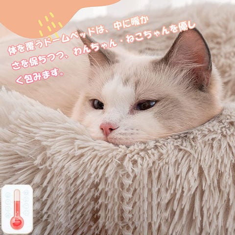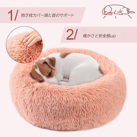 【ふわふわ生地】表面は4CMの長毛素材となり、中には高反発のPP綿をたっぷり充填し、軽くて滑らかな心地よさです。冬や夏に冷房でペットの体温を維持することができます。柔らかい丸いドーナツ型のデザインで、犬猫用ベッドはどの方向ても柔らかい。愛猫や愛犬を守りながら、お子様やご自宅を傷つけることは決してありません。丸型はある程度で体を包み込むような暖かさを提供しており、ペットちゃんに暖かい環境とぐっすり眠りのベッドを与えます。