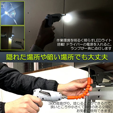 【LEDライト付き&2WAY】LED照明が搭載しますので、暗いところや細かい部分も見やすいです。振動ドリルが作業すると同時に、ライトも点灯して、そのままでスムーズで楽々作業できます。またL型とストレート型に変形が可能。