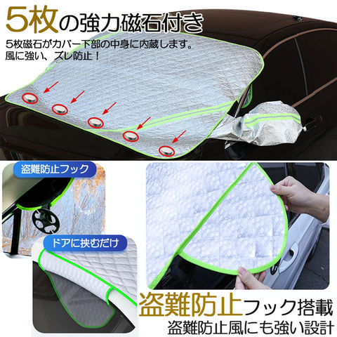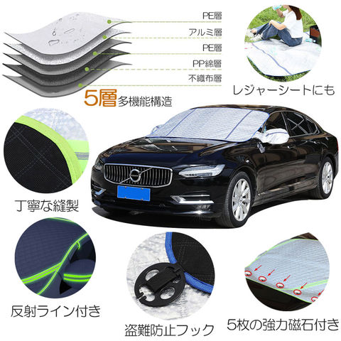 フロントガラスカバー 凍結防止カバー フロントカバー 凍結防止シート サンシェード カバー 5枚磁石内蔵 UVカット 遮光断熱 防水 雪除け 氷除け 落ち葉 四層構造 オールシーズン 四季対応 普通車 軽自動車 SUV適用