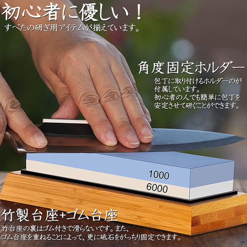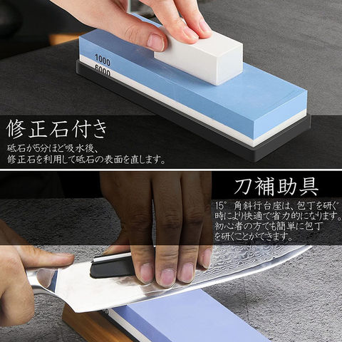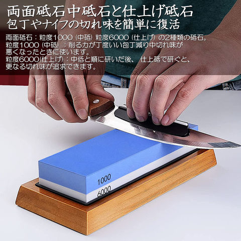 研ぎ石 包丁 両面砥石 #1000 #6000 砥石 刃物砥石 包丁研ぎ砥石 包丁研ぎ器 中砥石 仕上砥石 包丁研ぎ 包丁砥石 刀補助具 竹台座 ゴム台座 面直し 付き 家庭用 料理人用 包丁 サバイバルナイフ 彫刻等セット 日本刀 はさみ