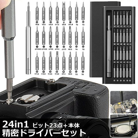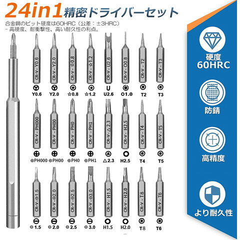 精密ドライバーセット ドライバーセット 特殊ドライバー CR-V 合金鋼 24in1 三角型 星型 Y型 プラス マイナス トルクス パソコン スマホ カメラ ゲーム機 眼鏡 修理 磁石付き 工具セット 滑り止めハンドル ミニドライバーセット