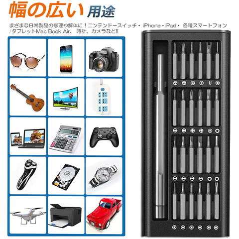 【精密ドライバー】25in1(ビット24本/本体1本)人気のあるすべての iPad、iPhone、PC、PS4、時計、メガネ、ラップトップ、携帯電話、ゲーム コンソール、カメラ、MacBook などに合わせて特別に設計されています。 このキットを使用すると、電子機器を自分で修理したり、アクセサリの一部を交換したりできます。 この実用的なドライバー d12-43aは、プロにも愛??好家にも最適です。【豊かなビット種類】用途の広い磁気ドライバーキットには、8 種類の 24 種類のビットが含まれています。