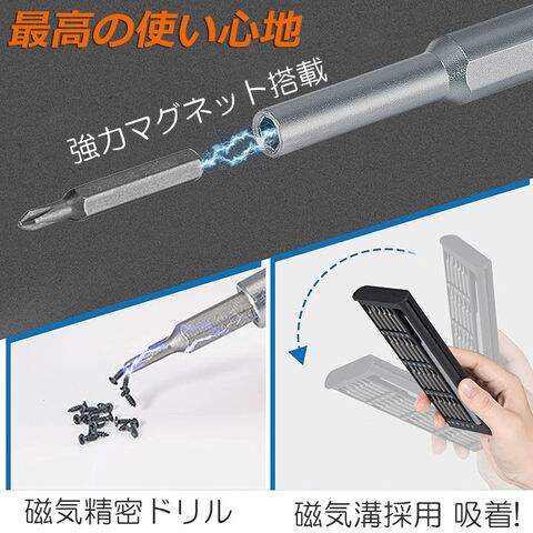 【マグネットデザイン】マグネットデザインは、より使いやすく、あなたに素晴らしい使用体験をレンダリングします。これにより、ビットを簡単に取り外して再組み立てできます。必要なビットを選んでロッドの穴に入れるだけで、磁気の力でビットがしっかり吸着されます。 この実用的なデザインは、時間と労力を節約するためのものです。