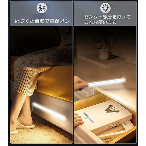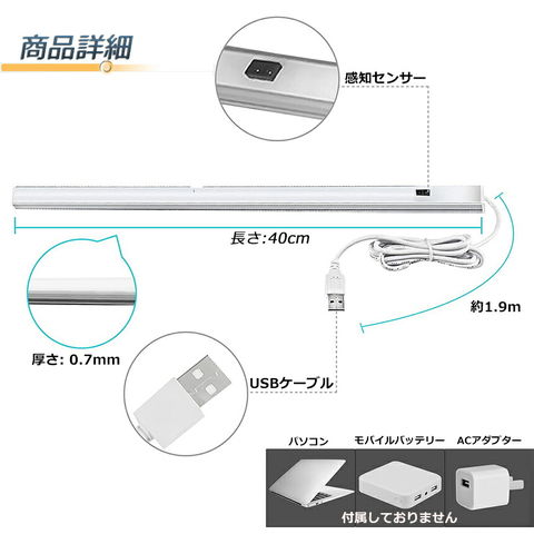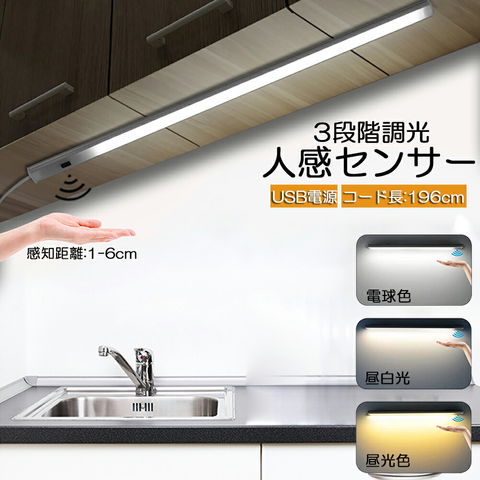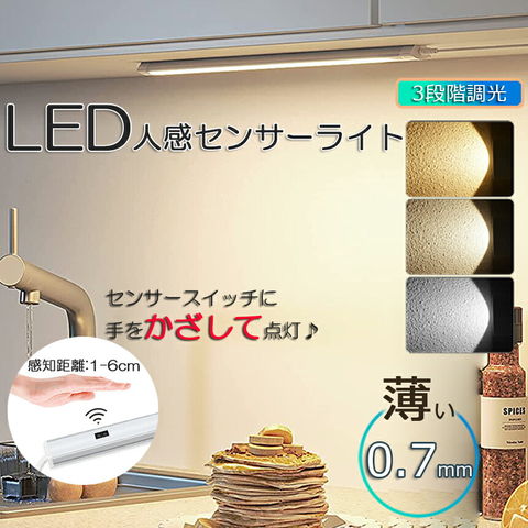 人感センサーライト キッチンライト フットライト LEDバーライト センサーライト 40cm 3段階調色 電球色 昼白色 昼光色 バーライト タッチレス センサーライト 非接触 USBケーブ