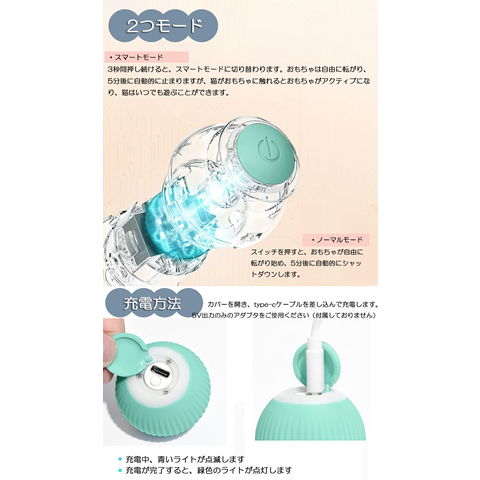 【USB充電式】 リチウムイオン電池内蔵している。平滑なタイル床、フローリング床での使用に適しています。厚いカーペットの床では、ボールがうまく回らないので不向きです。